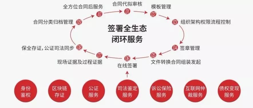 打通互联网法院、公证处、司法鉴定中心、仲裁委等权威机构,打造强司法保障服务体系,能够提供完善的存证、固证、举证服务,相比纸质合同起到更严谨安全的法律效力;